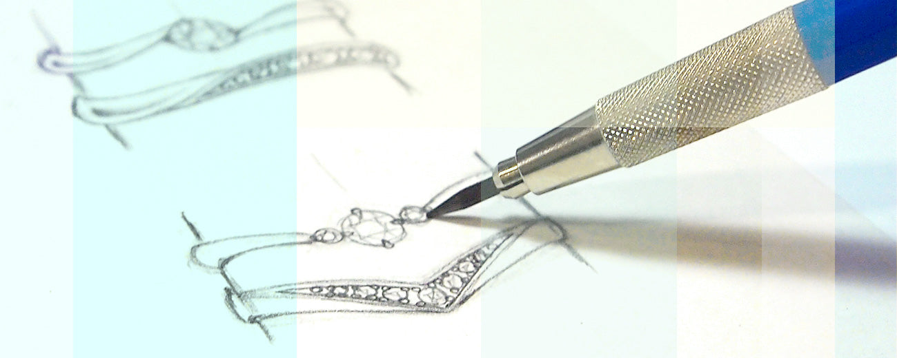 従来の鉛筆によるデザイン画の他に、正確で立体的な設計図を描ける3D-CADを使用。このデータを元にキャストと呼ばれる原型が作られるので、正確で繊細な表現が可能です。