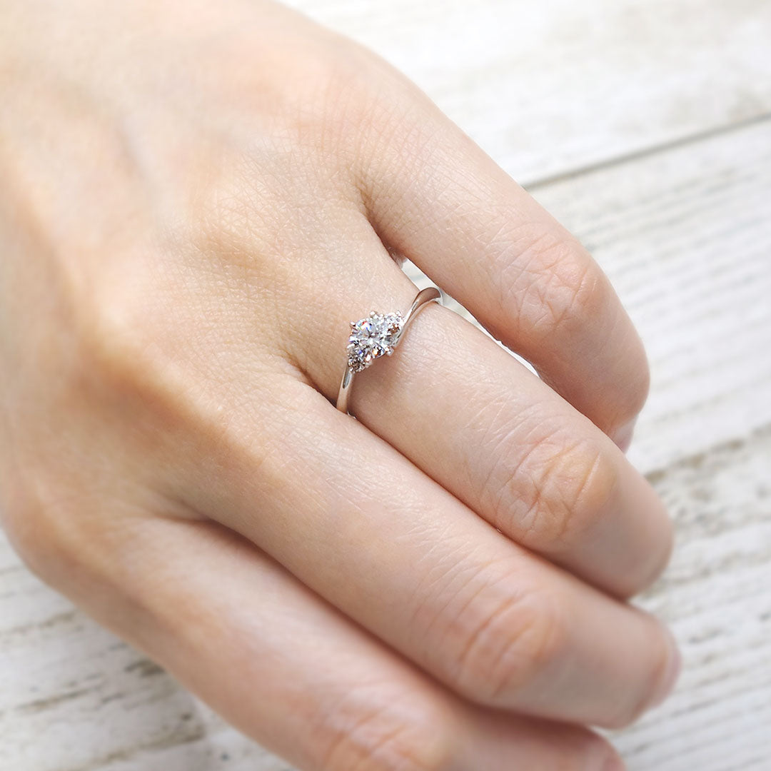 両サイドのメレダイヤがキュートなシンプルウェーブのエンゲージリングです。