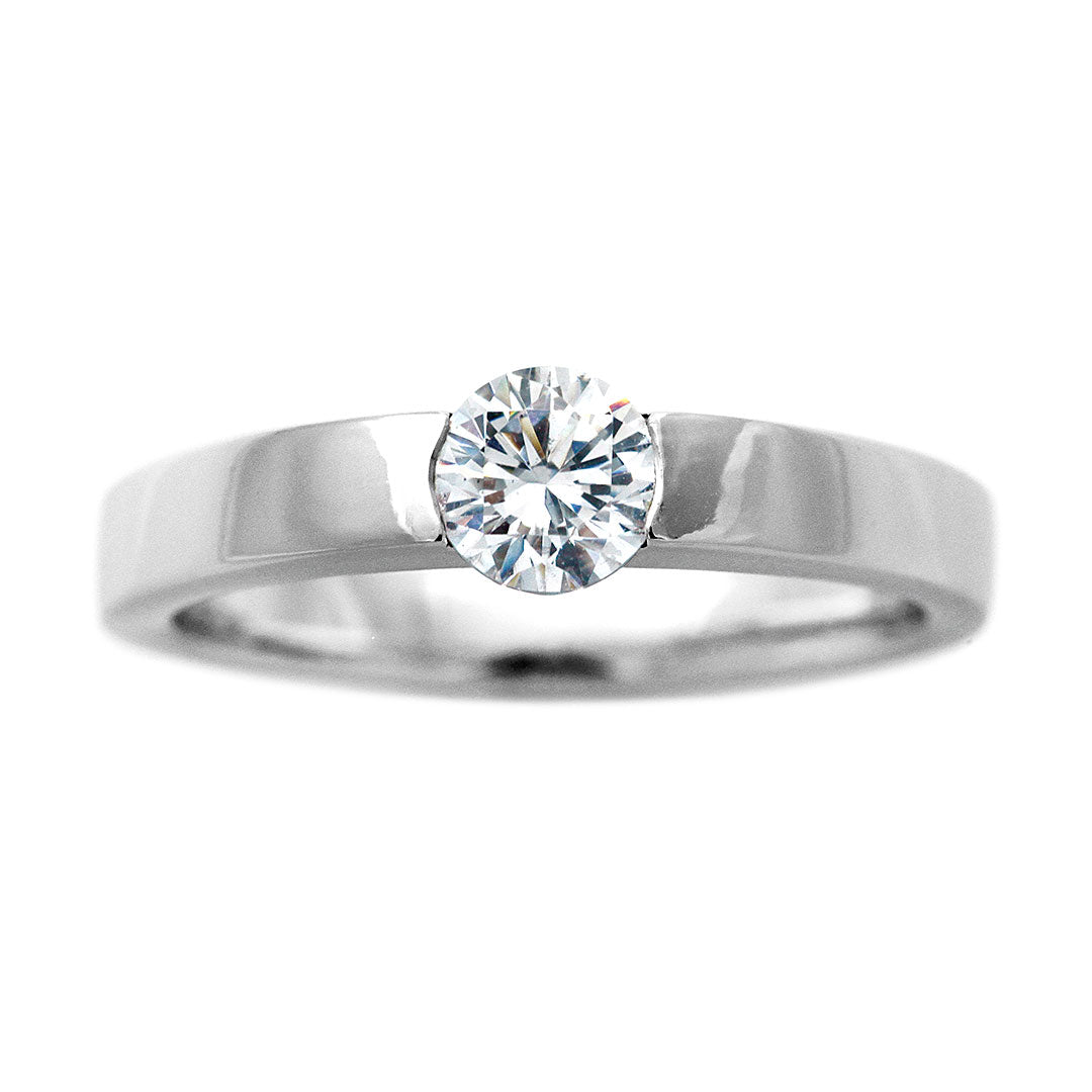 ダイヤモンドが煌めく、爪のないスタイリッシュなソリティアリングです。