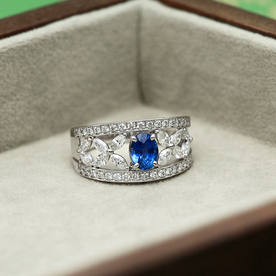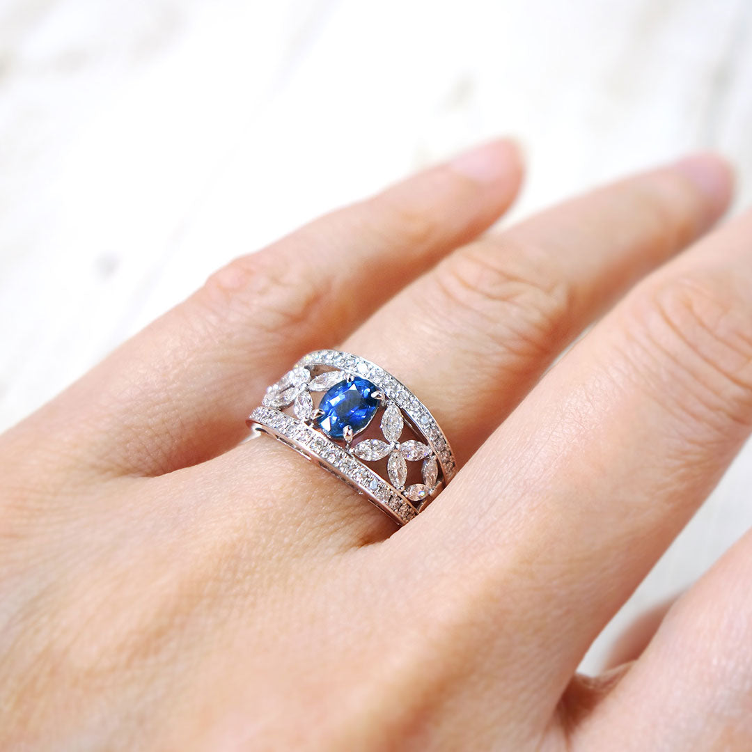 カラーストーンのルースをご自身でお選びいただき、掲載されているデザイン(「オーダー・リフォーム対応デザイン」マークの付いている商品)、もしくは一からオリジナルのデザインでお仕立てすることもできます。