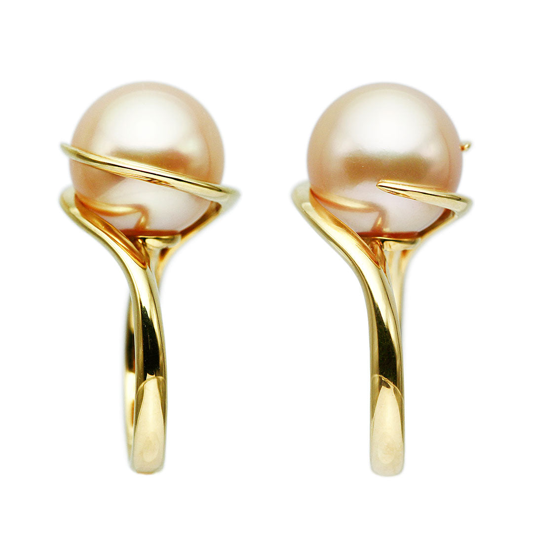 くるりと巻きつくゴールドがお洒落。ゴールデンパールのリング。