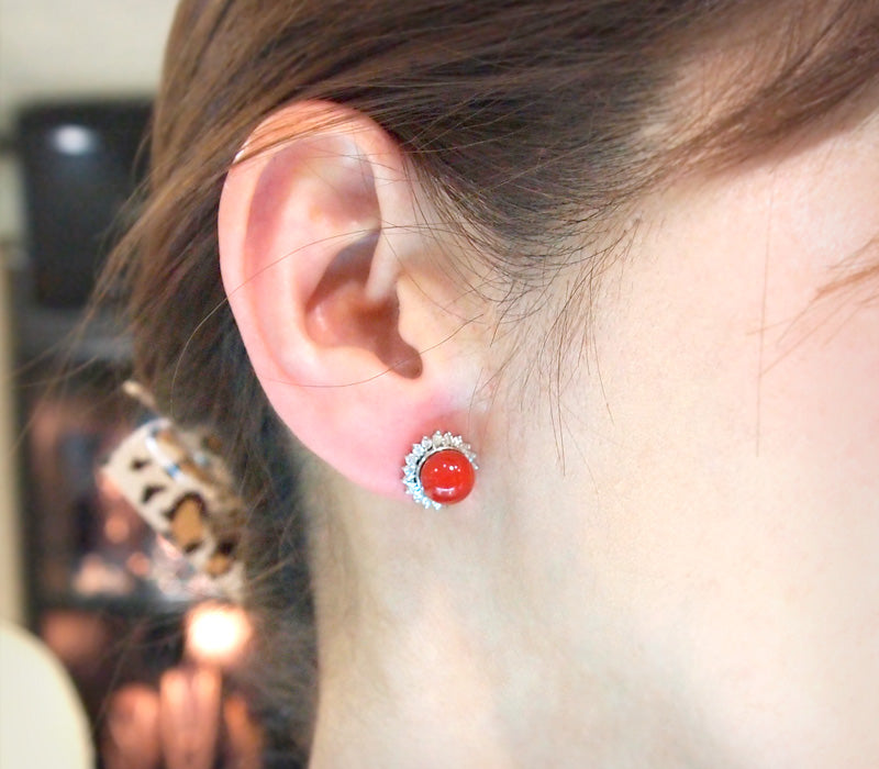 かんざしや帯留めなど和のイメージが強いですが、洋服とのコーディネートももちろん素敵です。赤い珊瑚(サンゴ)ですと、珊瑚特有のマット感を活かして、プラチナ・ホワイトゴールド地金を使って黒の服に合わせると個性的でクールなイメージに。ピンク色の珊瑚(サンゴ)の場合、ゴールド地金で明るく初々しい印象に。少し柔らかい宝石なので、ペンダントやイヤリングだと気楽にお使いいただけますよ。
