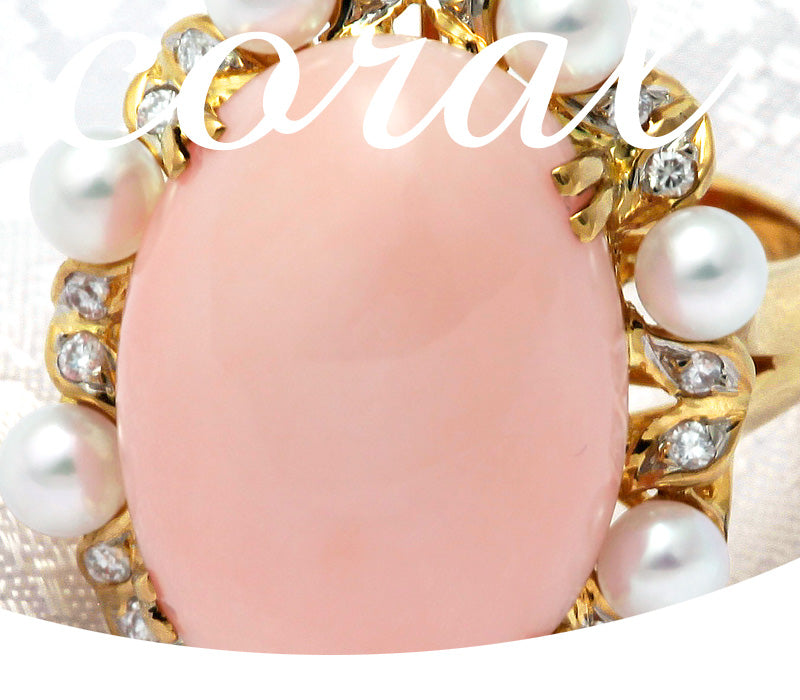 真珠と並ぶ海の宝石・珊瑚(サンゴ)。“コーラルピンク”という色名に珊瑚が形容されるほど初々しい色合いの桃色珊瑚(サンゴ)をはじめ、血赤色の珊瑚(サンゴ)はとても稀少性があります。和のジュエリーと相性が良いのはもちろん、古くから安産のお守りや子供のお守りとして、また結婚35周年の珊瑚婚のプレゼントとしても人気があります。