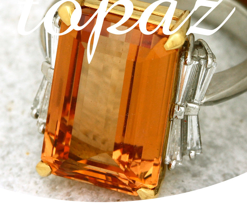 トパーズの和名は“黄玉”。その名からトパーズはシトリンと混同されがちですが、実は別々の宝石です。トパーズはその名を冠した黄色だけではなく、無色・ブルーなどもあり、そしてシェリー酒のような少しピンク・オレンジ色を帯びた色合いのものは“インペリアルトパーズ”という特別な呼称を持ちます。かつては日本でも産出した宝石です。